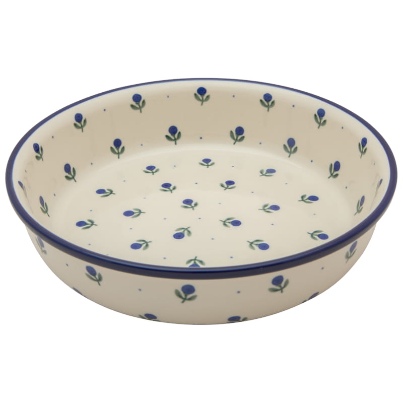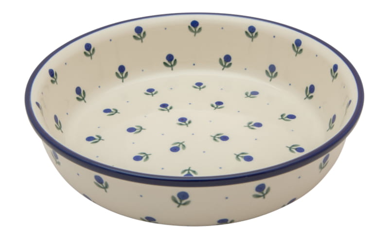 Plant pattern in dark blue (small fruit, blueberry) and green colors. The edge in navy blue. Boleslawiec pottery - handpainted.