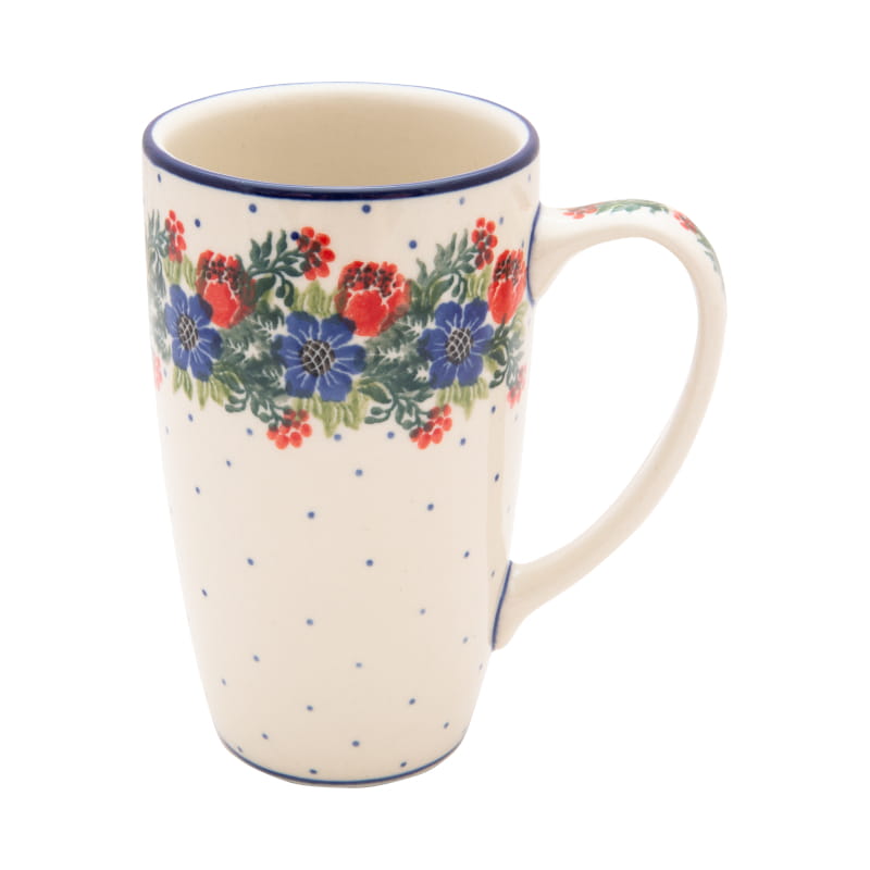 Dekor HERZ. KLASSISCHES Muster - marineblaue Herzen und kleine Punkte. Ein rotes Herz. Kobaltblauer (dunkelblauer) Rand. Original Bunzlauer Keramik.