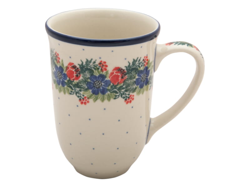 Dekor HERZ. KLASSISCHES Muster - marineblaue Herzen und kleine Punkte. Ein rotes Herz. Kobaltblauer (dunkelblauer) Rand. Original Bunzlauer Keramik.