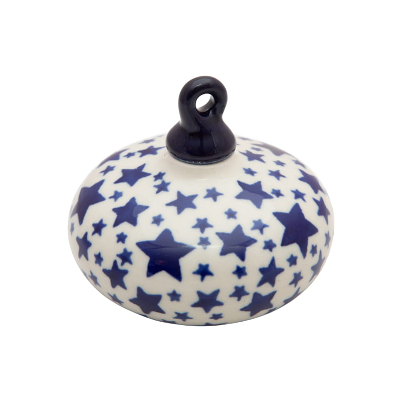 Wzór świąteczny - gwiazdki granatowe na białym tle. Ceramika Bolesławiec - HANDMADE.