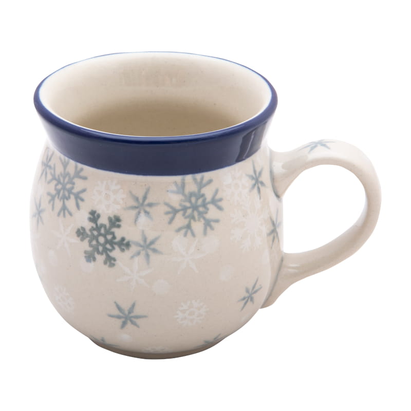 Winter pattern with snowflakes in shades of white and gray. The edge in navy blue. Boleslawiec pottery - hand painted.