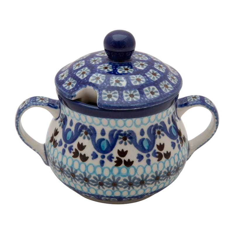 Oryginalna Ceramika Bolesławiec zdobiona ręcznie za pomocą stempli z gąbki morskiej i pędzelków, farby ekologiczne.