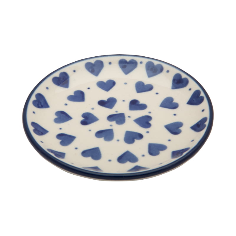 Classic pattern in a vintage style. Navy blue hearts on a white background. The edge in navy blue. Boleslawiec pottery - handpainted.