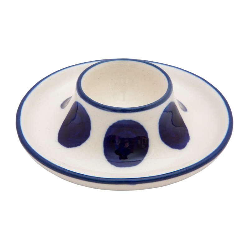 Vintage style pattern - large dots in navy blue. The edge in navy blue. Boleslawiec pottery - hand painted.