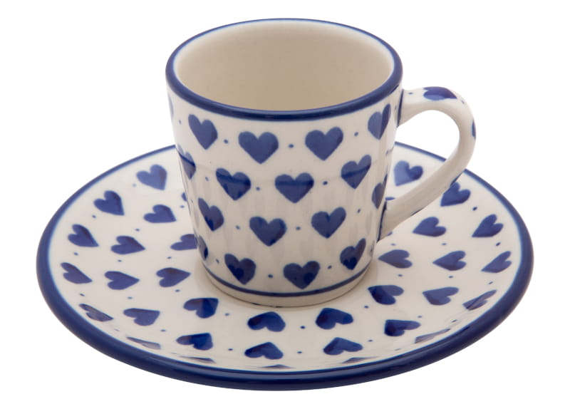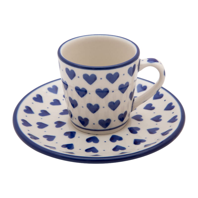 Classic pattern in a vintage style. Navy blue hearts on a white background. The edge in navy blue. Boleslawiec pottery - hand painted.
