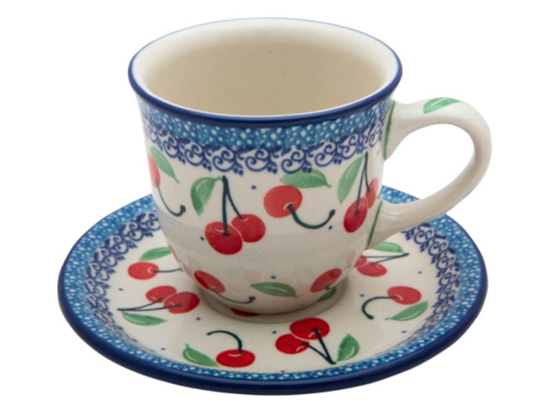 FILIŻANKA do herbaty kawy 200 ml ze spodkiem CZEREŚNIE