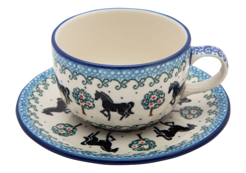 FILIŻANKA 200 ml do herbaty kawy ze spodkiem. Konie.