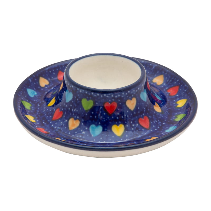 UNIQUE pattern - Heart pattern. Multicolored hearts on a navy blue background. The edge in navy blue. Boleslawiec pottery - handpainted.