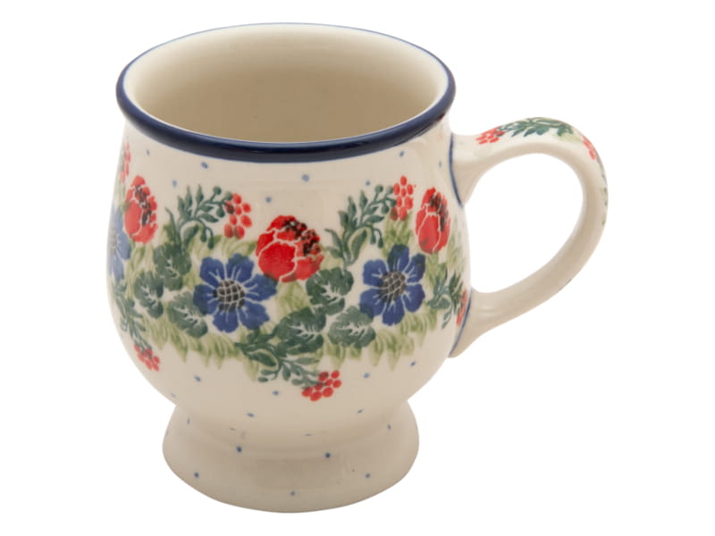 Ceramika Bolesławiec - Handmade. Wzór KWIATOWY w kolorach czerwonym i granatowym.