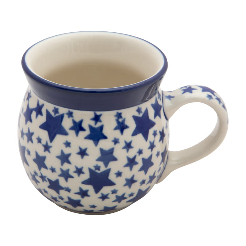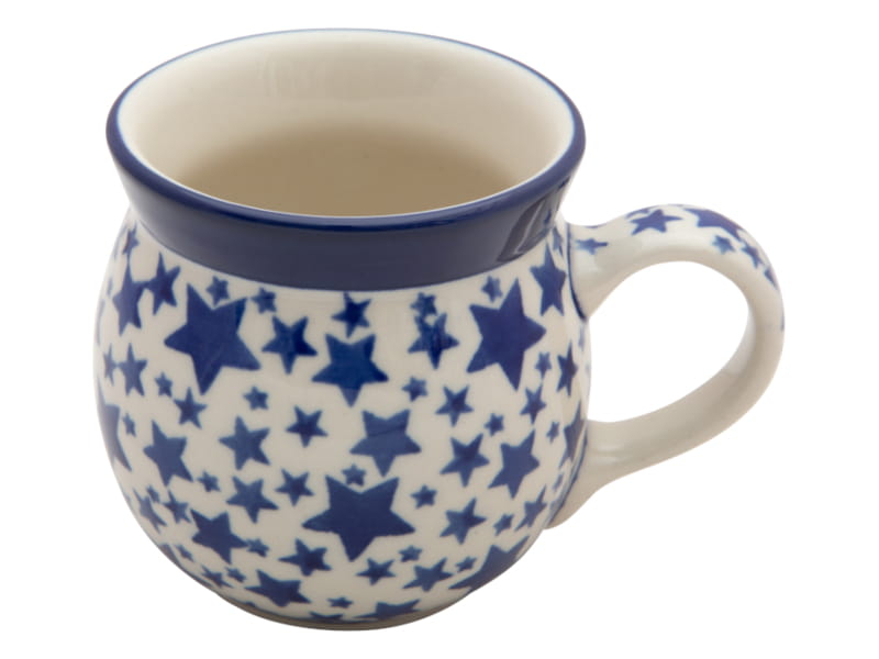 Wzór świąteczny - gwiazdki granatowe na białym tle. Ceramika Bolesławiec - HANDMADE.
