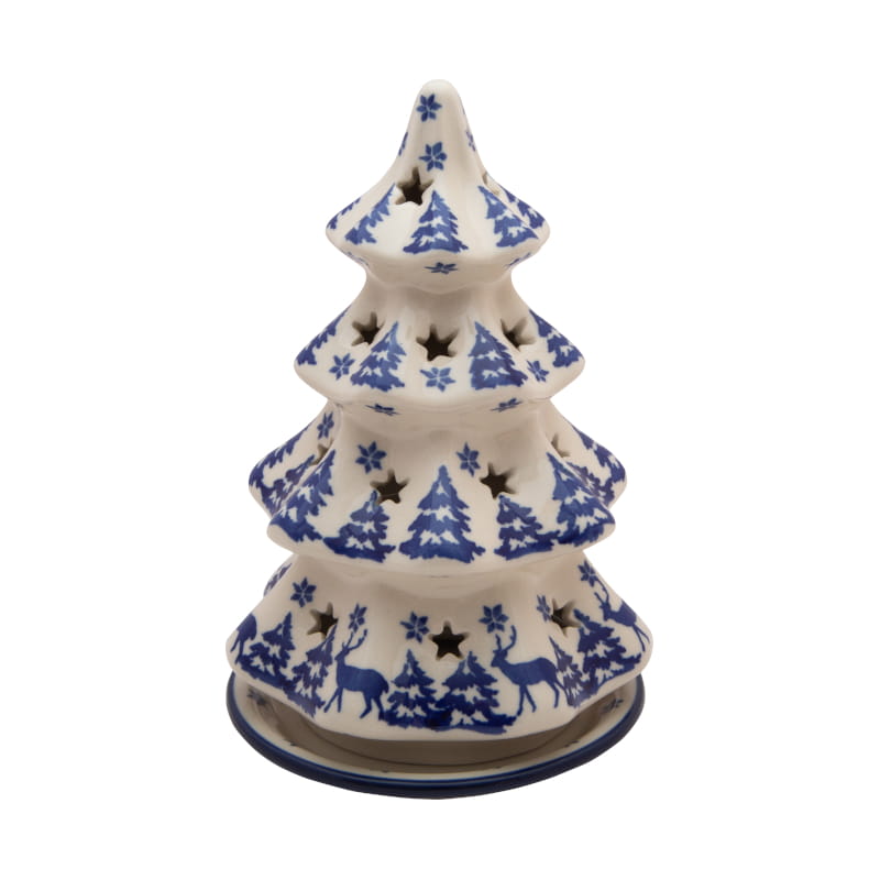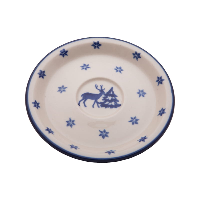 Wzór zimowy w kolorze granatowym. Wzór w płatki śniegu, renifery i choinki. Wykończenie obrzeża w kolorze granatowym. Ceramika Bolesławiec - HANDMADE.