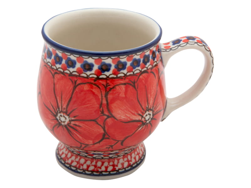 Unique pattern with with red flowers. Floral navy blue and red motif around. The edge in navy blue. Boleslawiec pottery - handpainted.