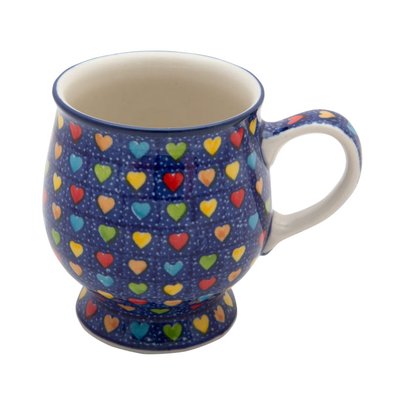 UNIQUE pattern - Heart pattern. Multicolored hearts on a navy blue background. The edge in navy blue. Boleslawiec pottery - handpainted.