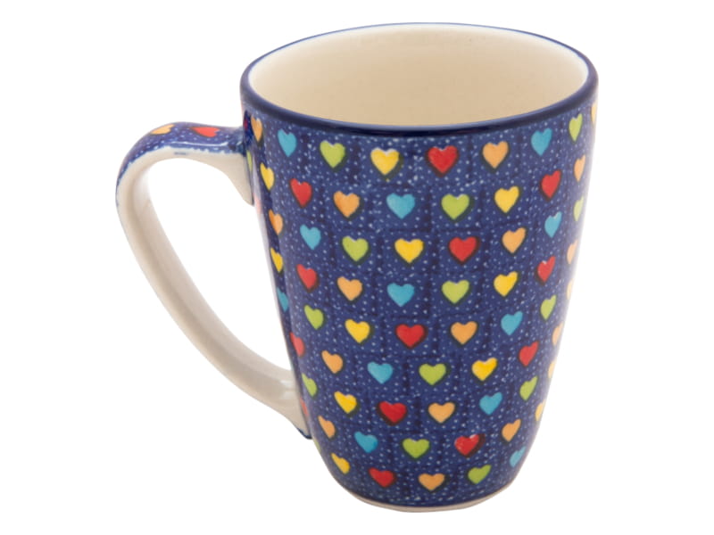 UNIQUE pattern - Heart pattern. Multicolored hearts on a navy blue background. The edge in navy blue. Boleslawiec pottery - handpainted.