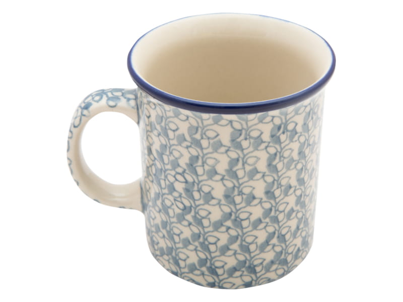 Plant pattern - leaves - in light blue. The edge is finished in navy blue. Boleslawiec pottery - handpainted.