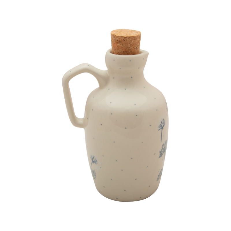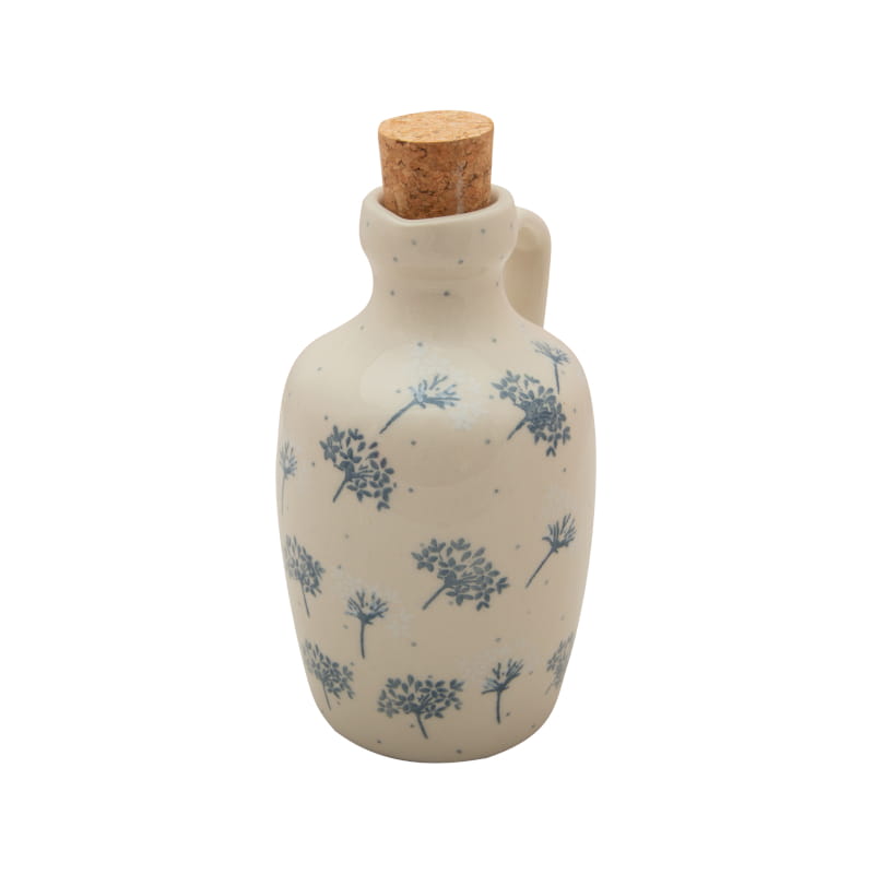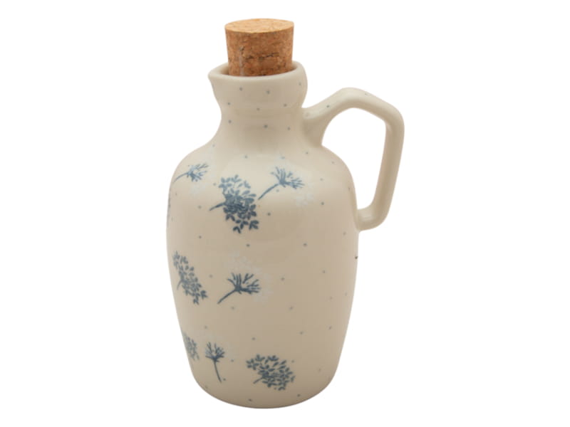 Delicate floral pattern in blue-gray and white colors (blooming and faded dill). Tiny light blue dots. The edge is in navy blue. Boleslawiec pottery - handpainted.