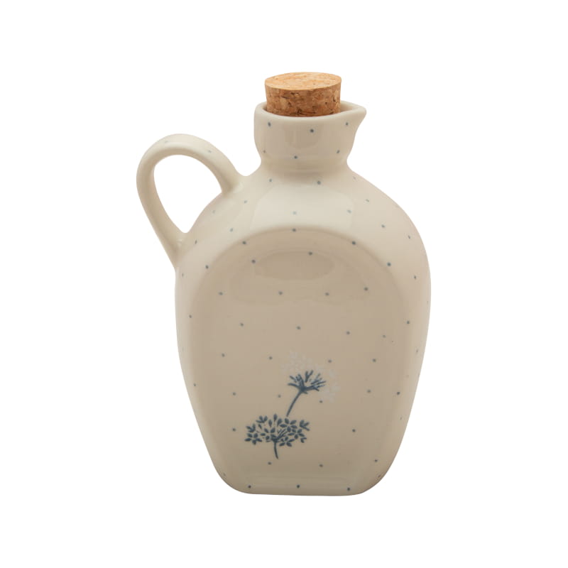 Delicate floral pattern in blue-gray and white colors (blooming and faded dill). Tiny light blue dots. The edge is in navy blue. Boleslawiec pottery - handpainted.