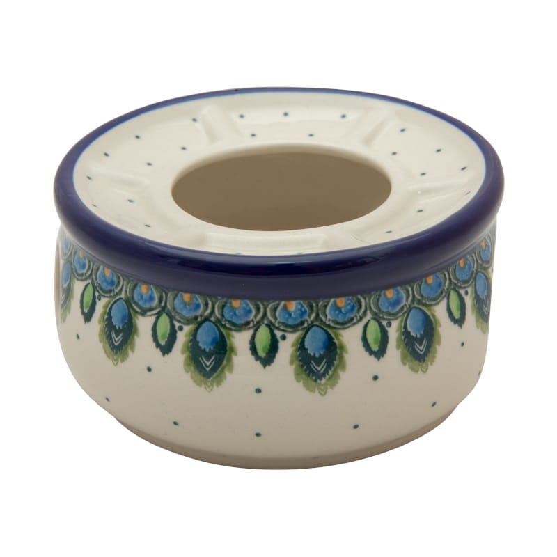 Niepowtarzalny motyw PAWICH PIÓR. Wzór w kolorach zieleni i kobaltowego błękitu. Wykończenie obrzeża w kolorze granatowym. Ceramika Bolesławiec - HANDMADE.