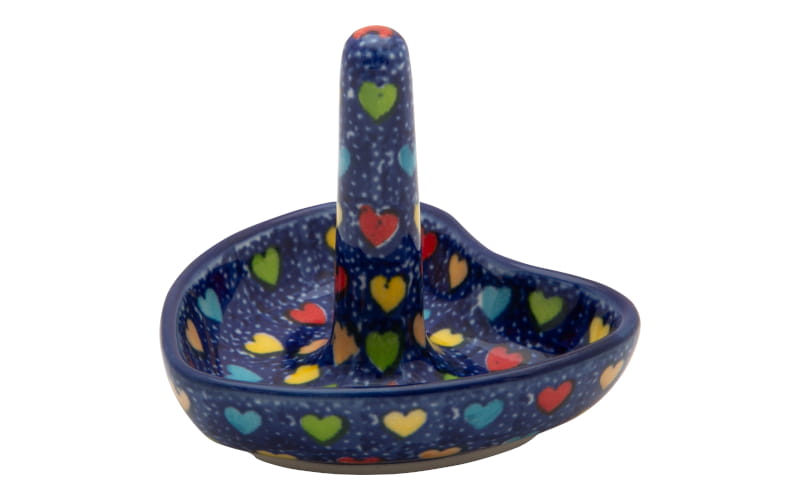 UNIQUE pattern - Heart pattern. Multicolored hearts on a navy blue background. The edge in navy blue. Boleslawiec pottery - handpainted.
