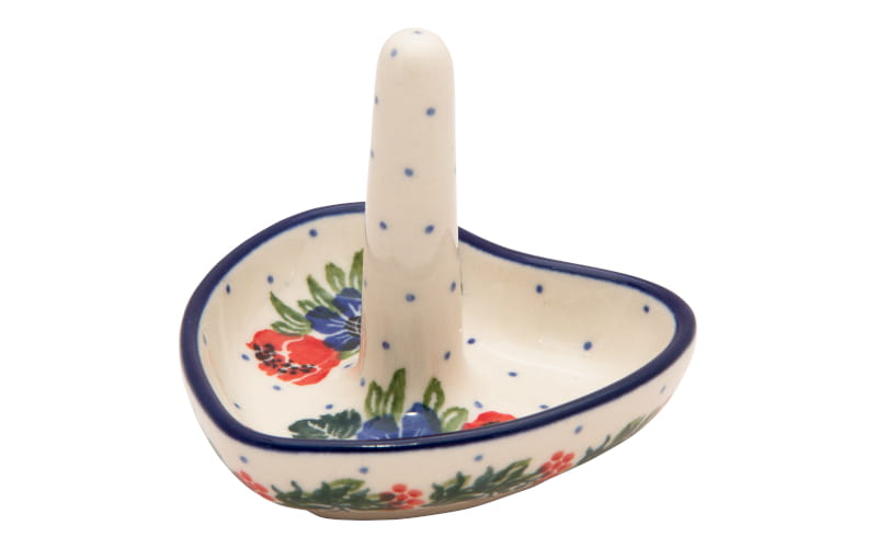 Dekor HERZ. KLASSISCHES Muster - marineblaue Herzen und kleine Punkte. Ein rotes Herz. Kobaltblauer (dunkelblauer) Rand. Original Bunzlauer Keramik.
