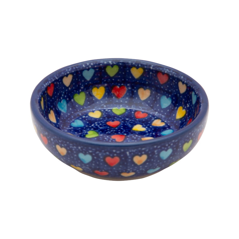 UNIQUE pattern - Heart pattern. Multicolored hearts on a navy blue background. The edge in navy blue. Boleslawiec pottery - handpainted.