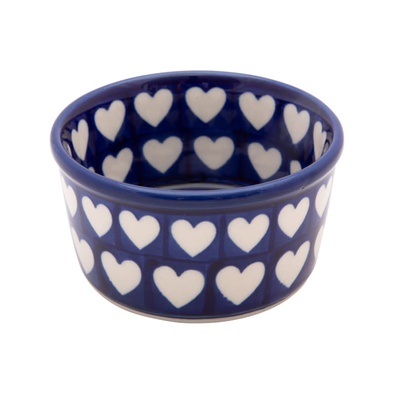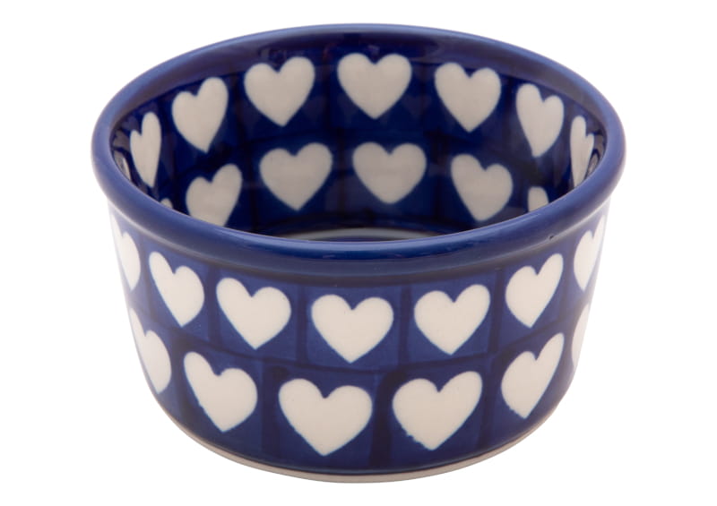 Classic pattern in a vintage style. White hearts on a navy blue background. The edge in navy blue. Boleslawiec pottery - handpainted.