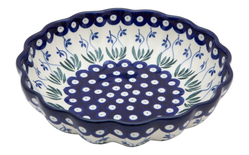 Classic pattern with plant motifs in navy blue and green colors. The edge in navy blue. Boleslawiec pottery - handpainted.