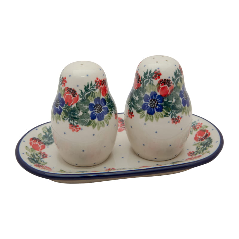 Solniczka Pieprzniczka z podstawką 18 cm – komplet.