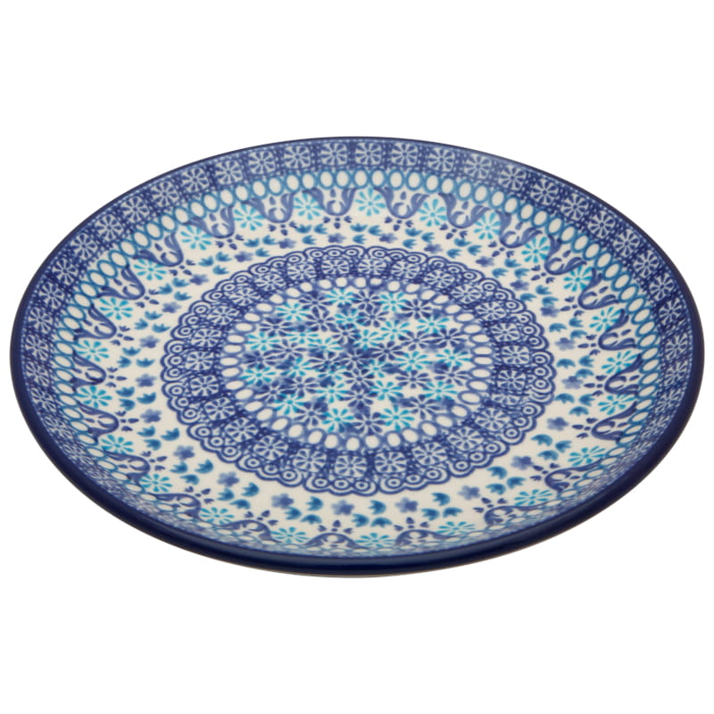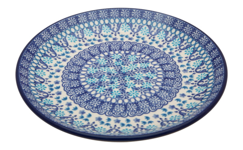 Ceramika Bolesławiec - HANDMADE. Wzór Klasyczny. Ornament w kolorach granatowym i niebieskim. Wykończenie obrzeża w kolorze granatowym.
