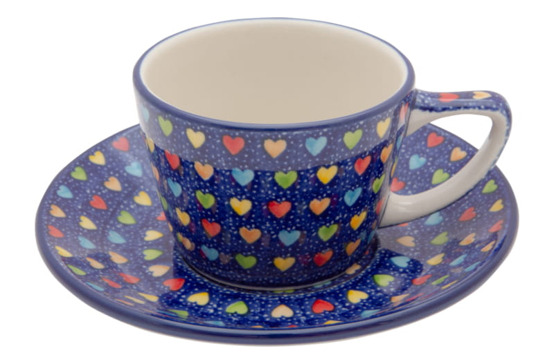 UNIQUE pattern - Heart pattern. Multicolored hearts on a navy blue background. The edge in navy blue. Boleslawiec pottery - handpainted.