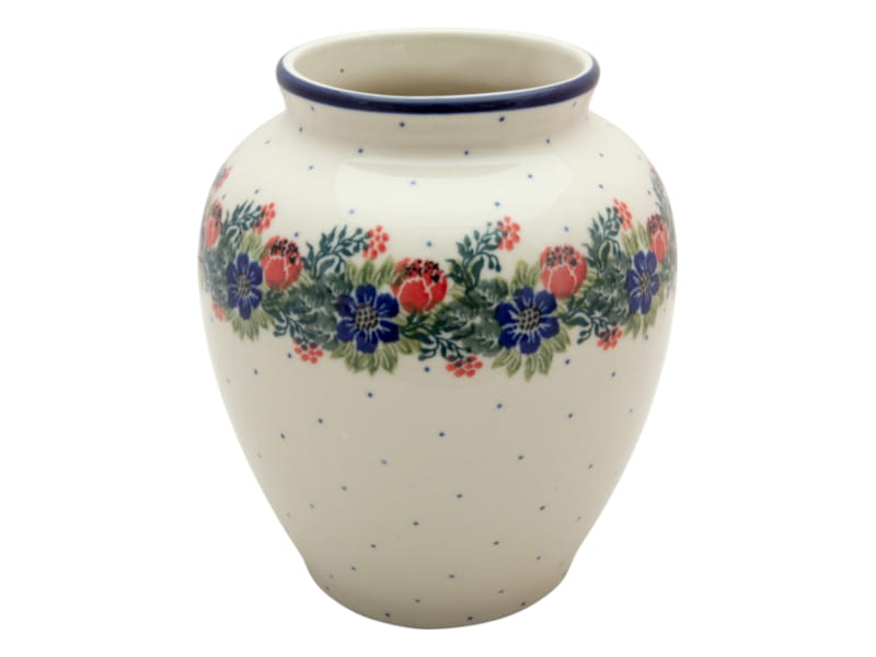 BLUMENmuster in rot und marineblau. Original Bunzlauer Keramik.