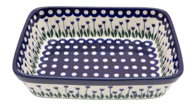 Original Bunzlauer Keramik. Original Bunzlauer Keramik. Classic Muster mit floralen Motiven in dunkelblau und dunkelgrün. Kobaltblauer (dunkelblauer) Rand.