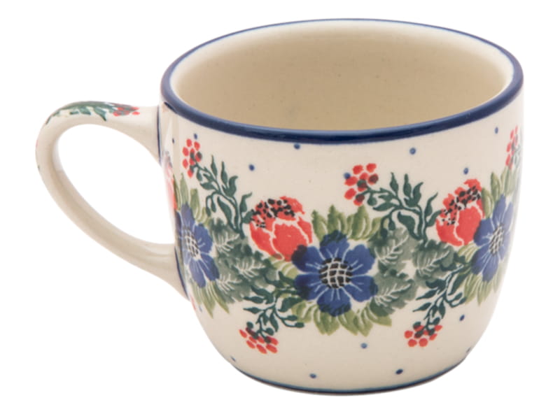 Original Bunzlauer Keramik. BLUMENmuster in rot und marineblau. Kobaltblauer (dunkelblauer) Rand.