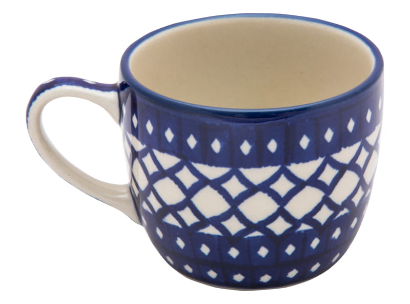 Geometrisches Muster - dunkelblaue Diamanten. Kobaltblauer (dunkelblauer) Rand. Original Bunzlauer Keramik.
