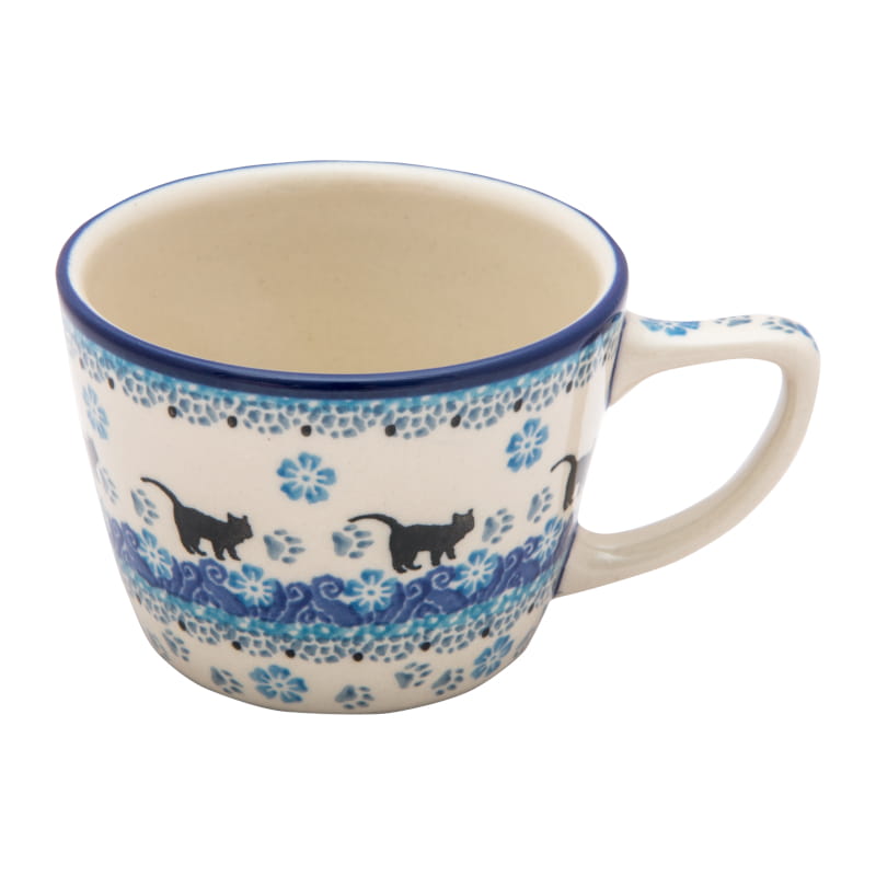 Original Bunzlauer Keramik. Muster mit Katzen - schwarze Katze. Kobaltblauer (dunkelblauer) Rand.