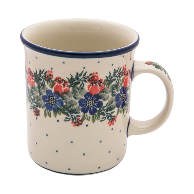 Dekor HERZ. KLASSISCHES Muster - marineblaue Herzen und kleine Punkte. Ein rotes Herz. Kobaltblauer (dunkelblauer) Rand. Original Bunzlauer Keramik.