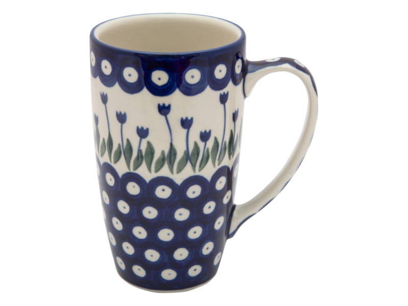 Original Bunzlauer Keramik. Klassisches Muster (Tulpen) mit floralen Motiven in flaschengrün und dunkelblau. Kobaltblauer (dunkelblauer) Rand.