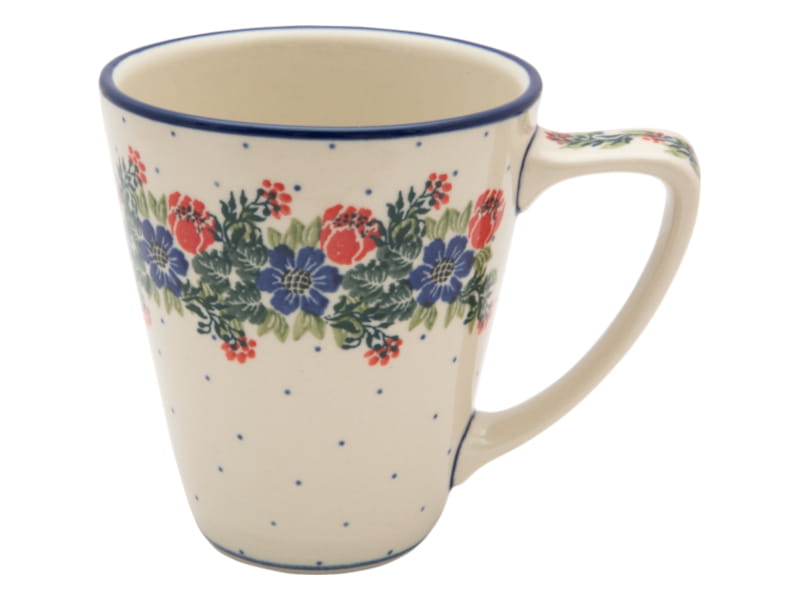 Original Bunzlauer Keramik. BLUMENmuster in rot und marineblau. Weißer Rand (Die natürliche Farbe des Brennprozesses).