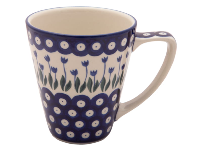 Original Bunzlauer Keramik. Klassisches Muster (Tulpen) mit floralen Motiven in flaschengrün und dunkelblau. Kobaltblauer (dunkelblauer) Rand.