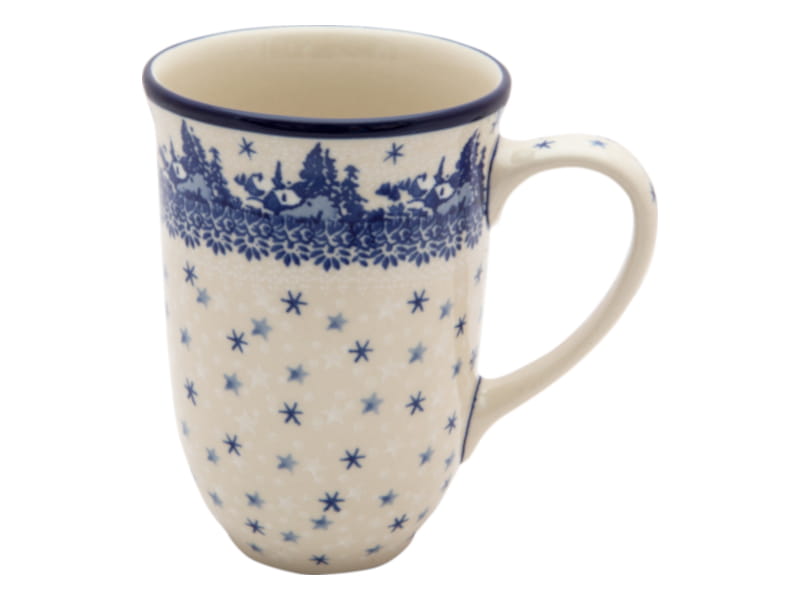 WEIHNACHTSmuster - Winterlandschaft und dunkelblaue Sterne. Kobaltblauer (dunkelblauer) Rand. Original Bunzlauer Keramik.