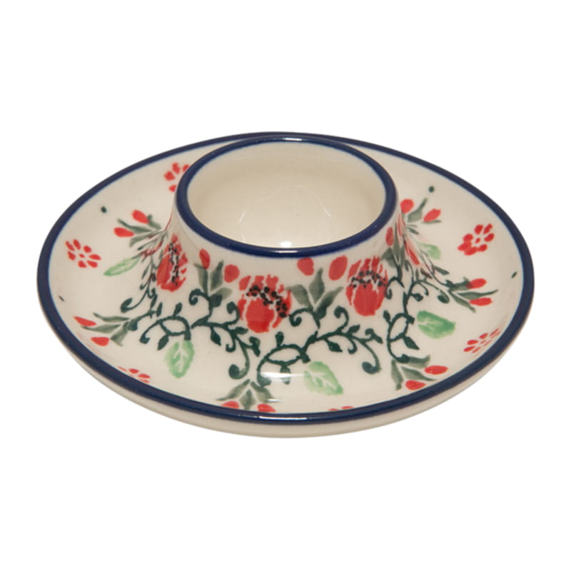 Original Bunzlauer Keramik. Blumenmuster in rot. Kobaltblauer (dunkelblauer) Rand.