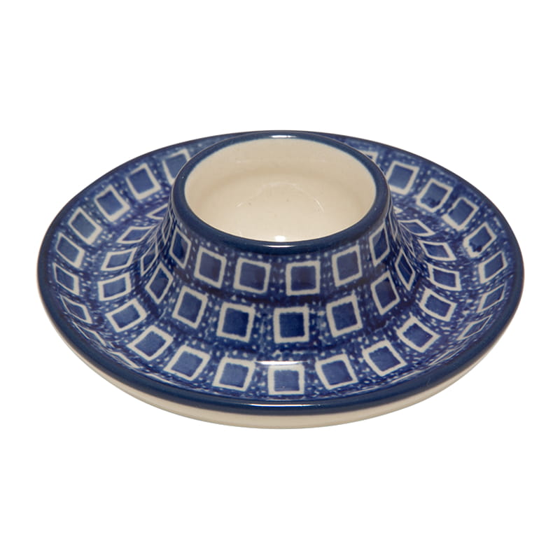 Original Bunzlauer Keramik. VINTAGE-Stil. Zarte weiße Quadrate und Punkte auf dunkelblauem Hintergrund. Kobaltblauer (dunkelblauer) Rand.