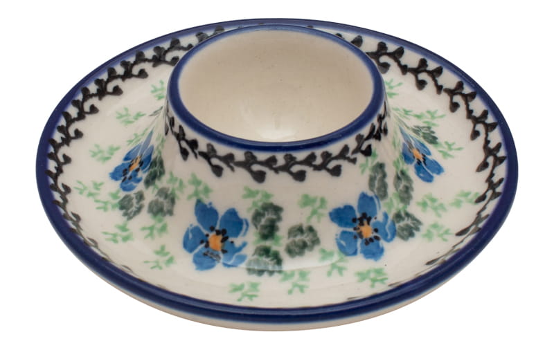 Original Bunzlauer Keramik. Blumenmuster in blauen und grünen Blättern. Kobaltblauer (dunkelblauer) Rand.