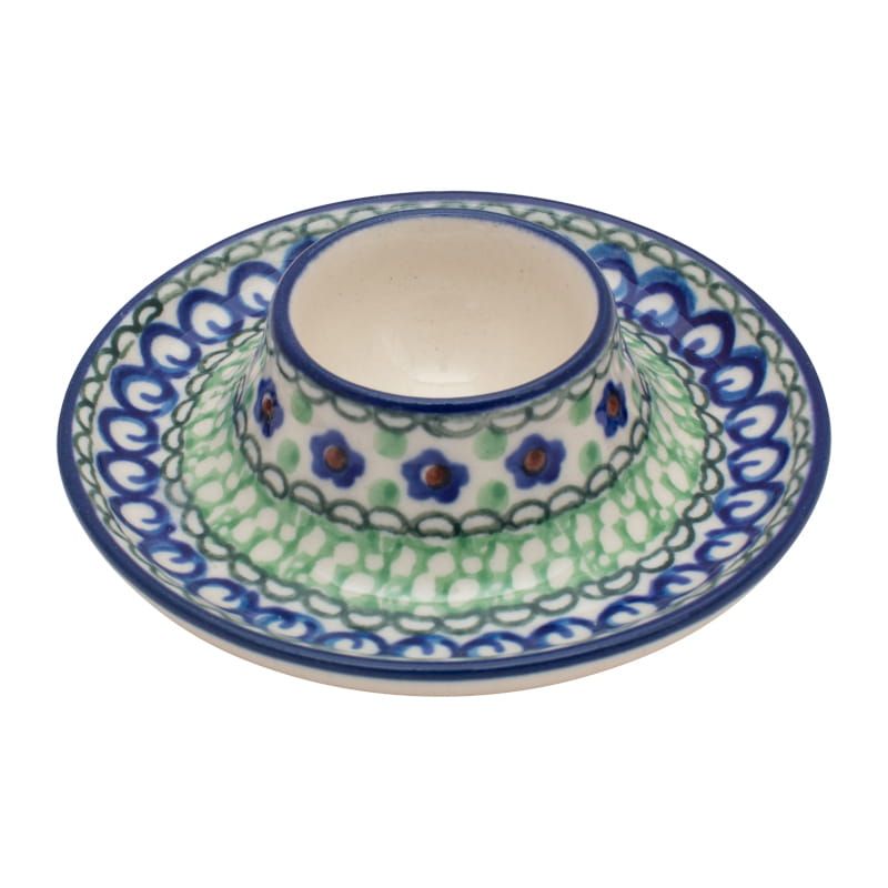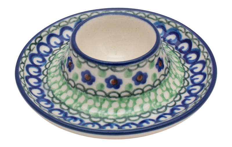Original Bunzlauer Keramik. UNIQUE Muster mit Blumen in hellgrün. Kobaltblauer (dunkelblauer) Rand.