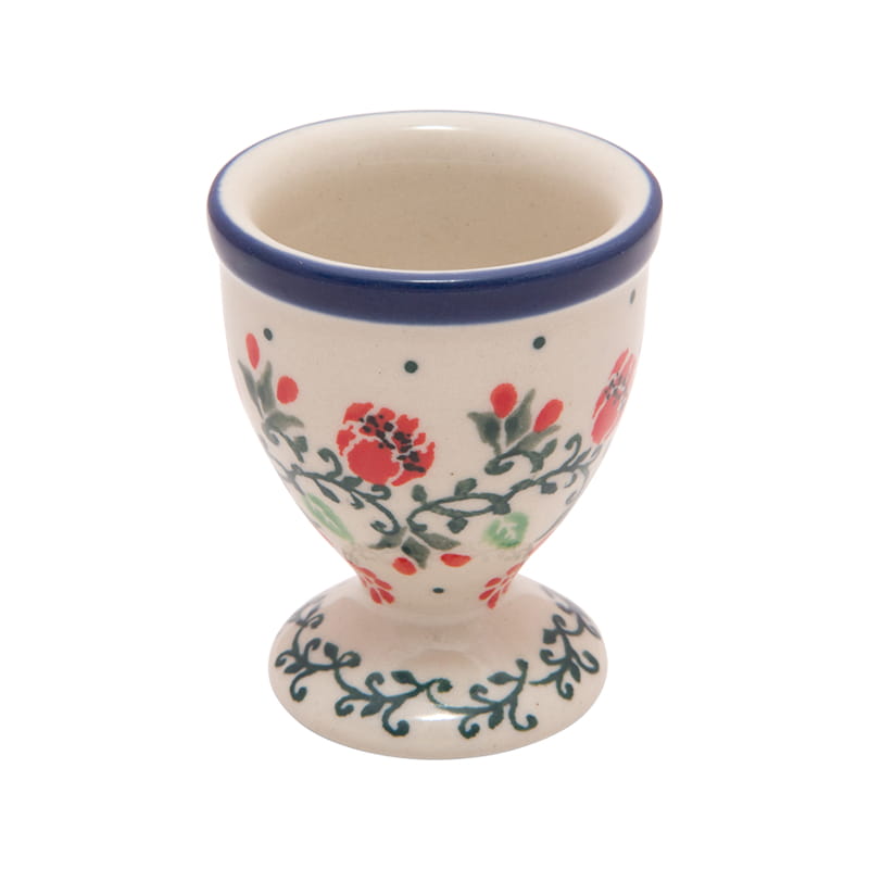Original Bunzlauer Keramik. Blumenmuster in rot. Kobaltblauer (dunkelblauer) Rand.