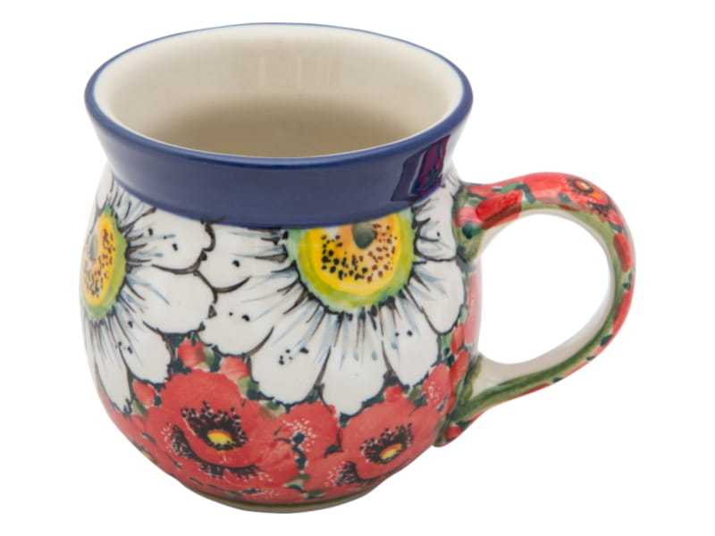 Original Bunzlauer Keramik. UNIQUE Muster. Handbemalt. Blumenthema - Mohnblumen und Gänseblümchen. Kobaltblauer (dunkelblauer) Rand.