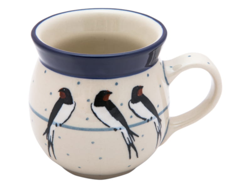 Einzigartiges Muster - Schwalbenvogel in den Schwarzweiss-Farben. Schwalbenvögel ruhen. Kobaltblauer (dunkelblauer) Rand. Original Bunzlauer Keramik.