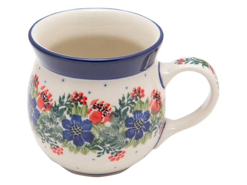BLUMENmuster in rot und marineblau. Original Bunzlauer Keramik.