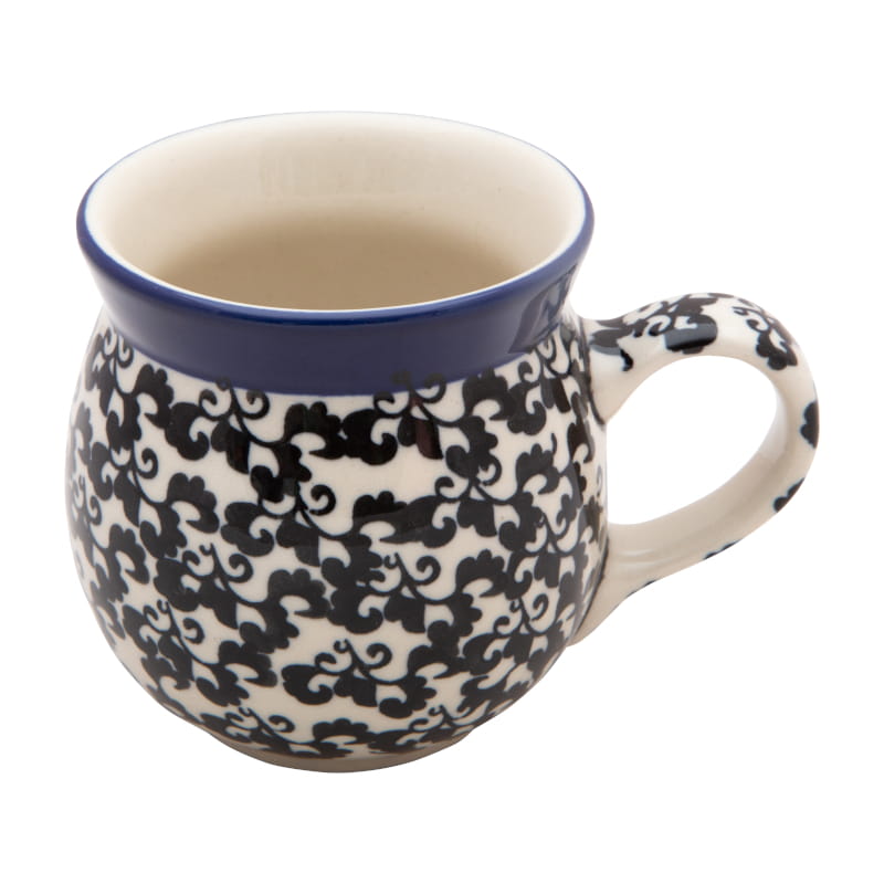 Orientalische, einfarbige Muster in graphit. Kobaltblauer (dunkelblauer) Rand. Original Bunzlauer Keramik.