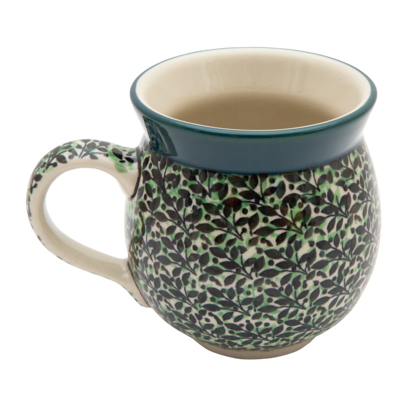 Original Bunzlauer Keramik. Muster mit floralen Motiven in dunkelgrün. Dunkelgrüner Rand.